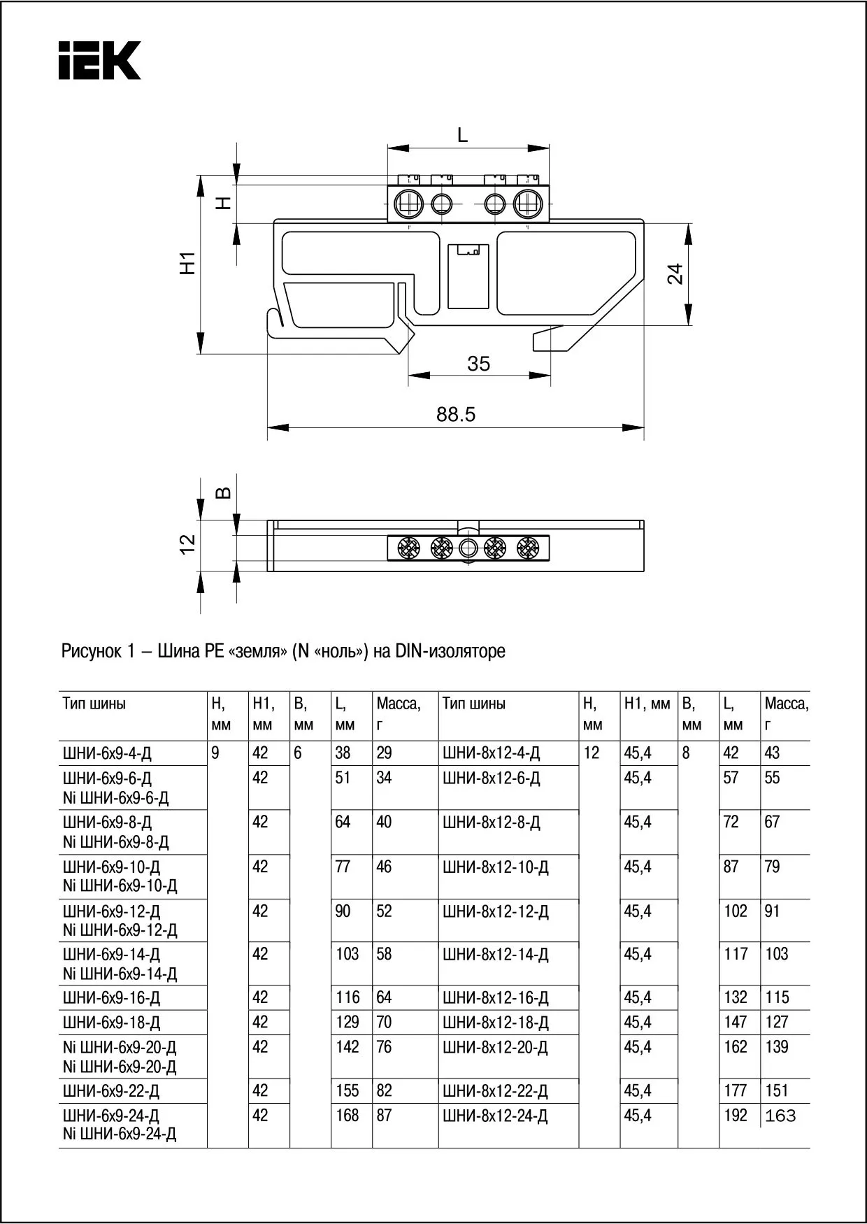 | Тип изделия | Шина изолятор на DIN-рейку |