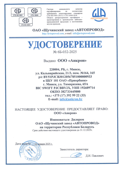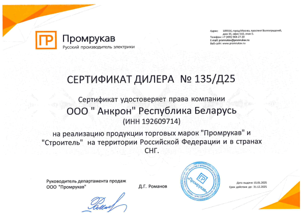Наличие лицензий и сертификатов гарантирует безопасность, надёжность и соответствие продукции стандартам качества. Это подтверждает статус «Анкрон» как одного из самых популярных и авторитетных дистрибьюторов в сфере электротехники в Беларуси.