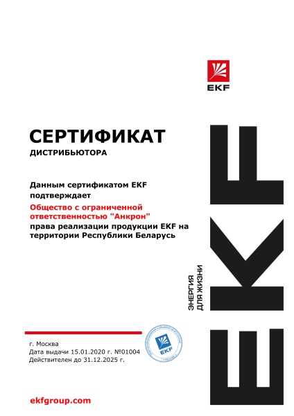 Наша продукция сертифицирована и соответствует действующим техническим регламентам. На сайте представлены официальные сертификаты соответствия, а также документы от производителей, подтверждающие, что «Анкрон» — официальный представитель более 70 брендов, включая IEK, EKF, Schneider Electric, Werkel, REXANT, JazzWay, Wolta, GreenEl и другие.